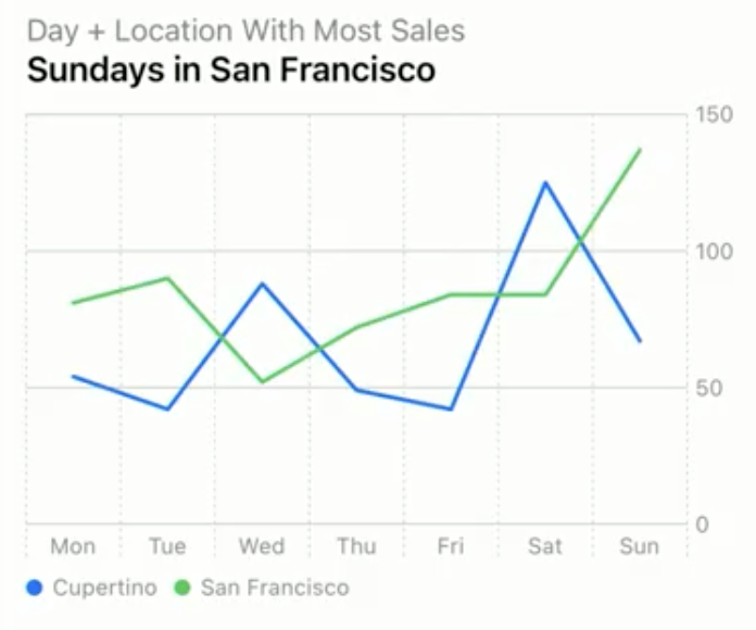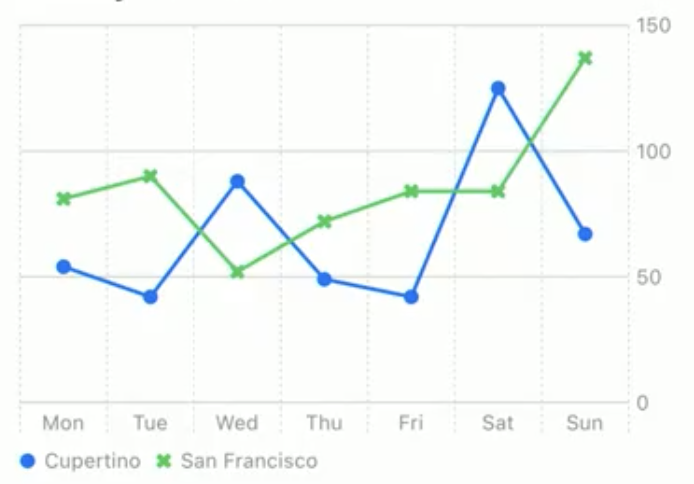 x, y에 있는 값을 바꾸면 Swift Chart가 자동으로 축을 바꿔주고, 차트를 보여줄 더 나은 스타일을 선택해서 보여준다.