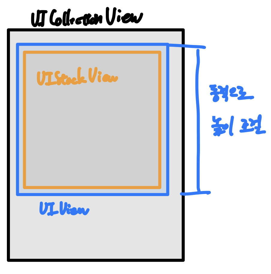 private func setupViews() { view.backgroundColor = .white setupContainerView() setupStackView() } // 파란색 컨테이너 뷰 생성 private func setupContainerView() { containerView = UIView() containerView.translatesAutoresizingMaskIntoConstraints = false containerView.backgroundColor = UIColor.systemBlue view.addSubview(containerView) // 컨테이너 뷰에 bottom constraint를 두지 않는다. containerView.topAnchor.constraint(equalTo: view.safeAreaLayoutGuide.topAnchor).isActive = true containerView.leadingAnchor.constraint(equalTo: view.leadingAnchor).isActive = true containerView.trailingAnchor.constraint(equalTo: view.trailingAnchor).isActive = true } // 주황색 스택 뷰 생성 private func setupStackView() { stackView = UIStackView() stackView.translatesAutoresizingMaskIntoConstraints = false containerView.addSubview(stackView) stackView.axis = .vertical stackView.backgroundColor = UIColor.systemOrange // 내부에 추가하는 뷰 let view = createSomeView() stackView.addArrangedSubview(view) // stack view에 bottom constraint를 두지 않는다. 외부 컨테이너 뷰의 높이를 스택 뷰의 높이와 같게 설정한다. stackView.topAnchor.constraint(equalTo: containerView.topAnchor).isActive = true stackView.leadingAnchor.constraint(equalTo: containerView.leadingAnchor).isActive = true stackView.trailingAnchor.constraint(equalTo: containerView.trailingAnchor).isActive = true stackView.heightAnchor.constraint(equalTo: containerView.heightAnchor).isActive = true }