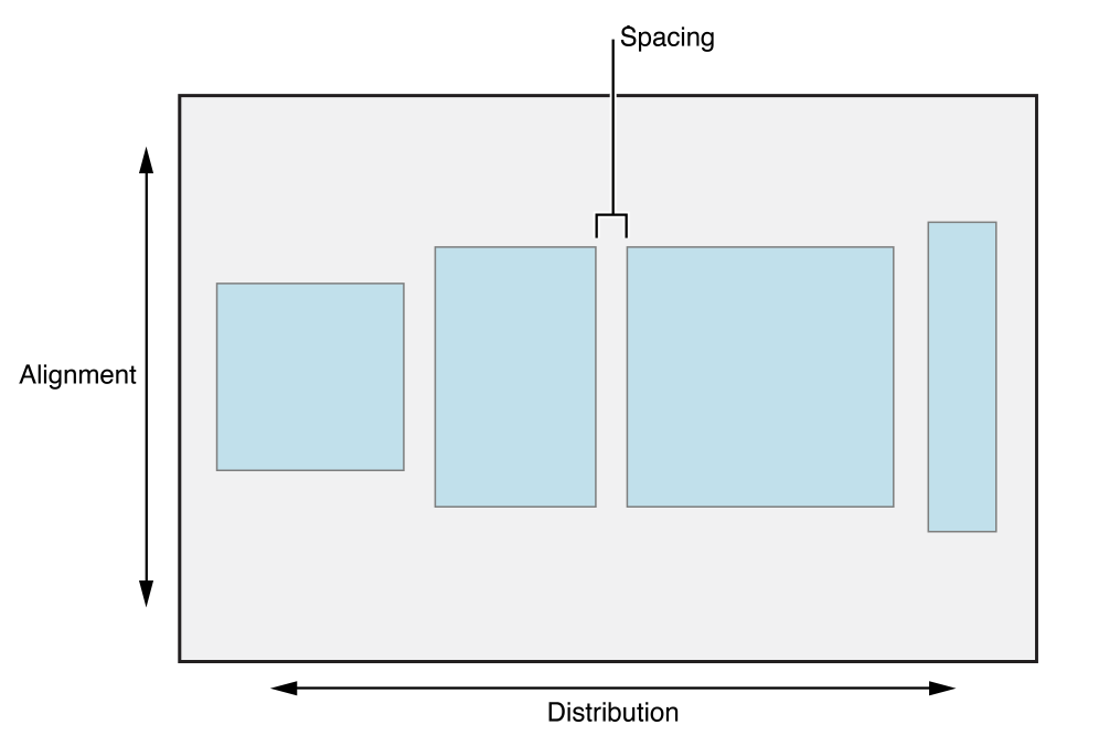 axis,distribution,alignment,spacing등의 프로퍼티에 의해 결정된다.