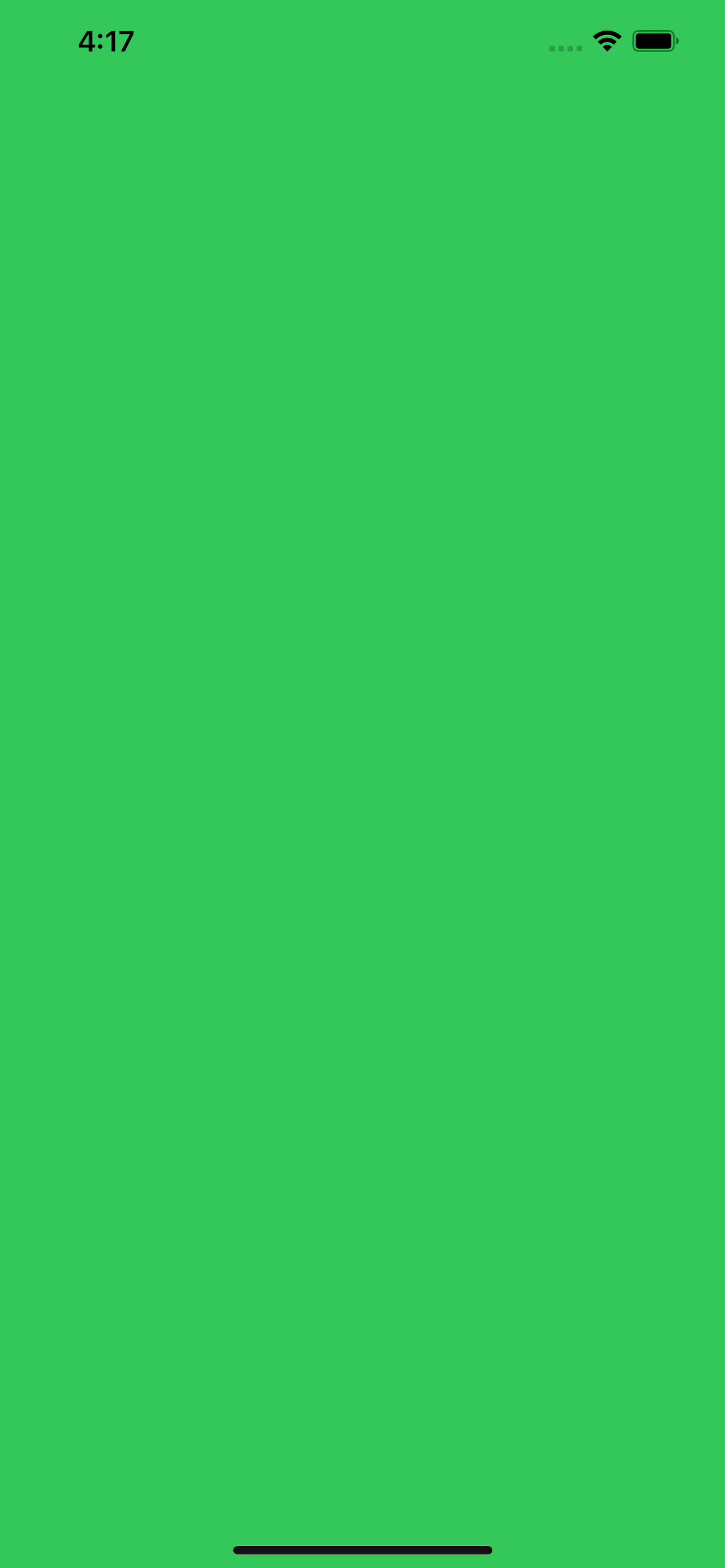 viewDidLoad()메서드에서 아래의 코드가 실행되게 했다. stackView 자체에도 auto layout을 사용해서 화면에 꽉 찬 stack view를 만들었다.stackView = UIStackView() stackView.translatesAutoresizingMaskIntoConstraints = false // subview들이 배열될 방향을 정해준다. stackView.axis = .vertical stackView.backgroundColor = UIColor.systemGreen view.addSubview(stackView) stackView.topAnchor.constraint(equalTo: view.topAnchor).isActive = true stackView.leadingAnchor.constraint(equalTo: view.leadingAnchor).isActive = true stackView.trailingAnchor.constraint(equalTo: view.trailingAnchor).isActive = true stackView.bottomAnchor.constraint(equalTo: view.bottomAnchor).isActive = true