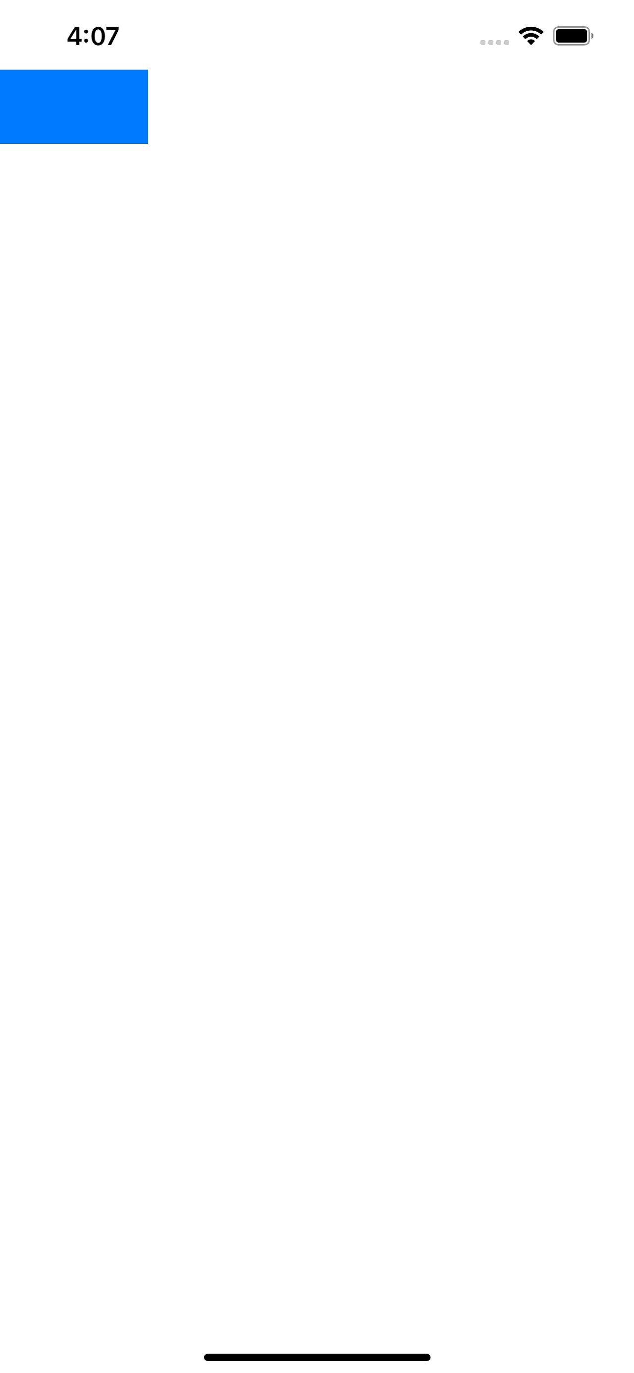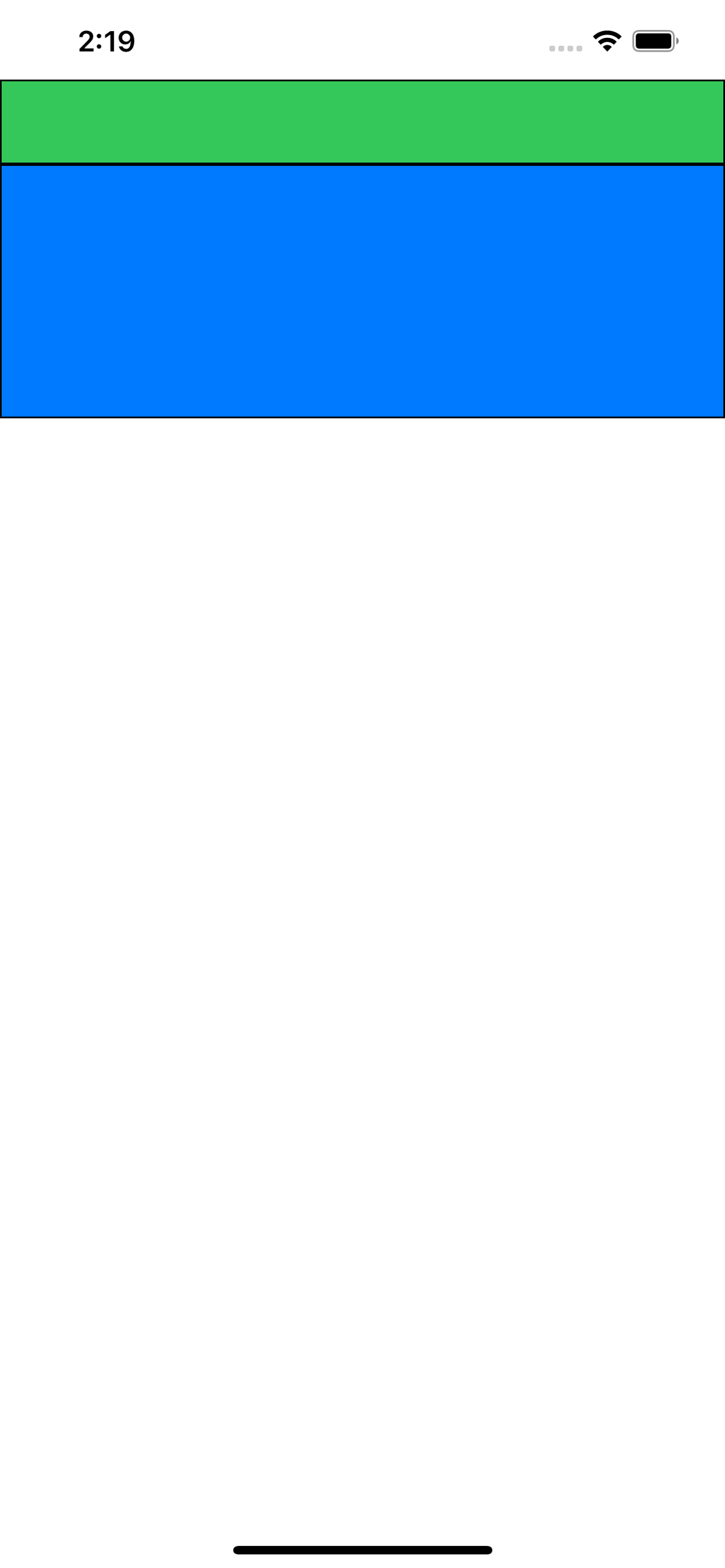 stackView = UIStackView() stackView.translatesAutoresizingMaskIntoConstraints = false stackView.axis = .vertical stackView.backgroundColor = UIColor.systemGreen view.addSubview(stackView) let tmpView = UIView() tmpView.translatesAutoresizingMaskIntoConstraints = false tmpView.backgroundColor = UIColor.systemBlue tmpView.heightAnchor.constraint(equalToConstant: 100).isActive = true stackView.addArrangedSubview(tmpView) stackView.topAnchor.constraint(equalTo: view.topAnchor).isActive = true stackView.leadingAnchor.constraint(equalTo: view.leadingAnchor).isActive = true stackView.trailingAnchor.constraint(equalTo: view.trailingAnchor).isActive = true // 위 코드에서 이 부분이 추가됐다 stackView.bottomAnchor.constraint(equalTo: view.bottomAnchor).isActive = true