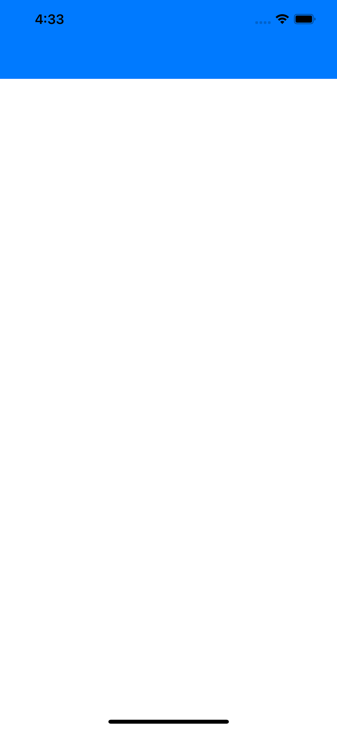 현재 stack view에는 아무런 뷰도 배치되어 있지 않다. stack view는 현재 높이가 가변적으로 조절될 수 있는 상태라 arranged subview 뷰가 없을 때는 stack view의 높이가 0이 되지 않을까? stackView의 bottomAnchor constraint를 없애고 실행해봤다.